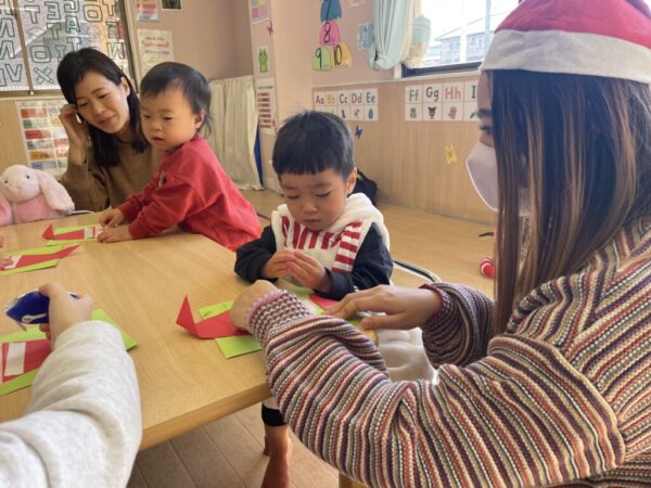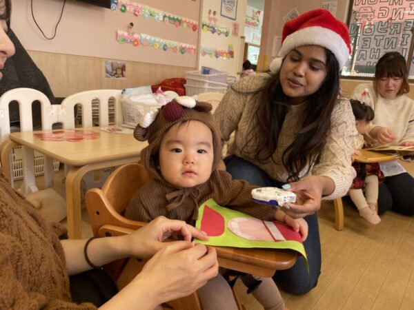クリスマスにちなんだお歌をうたったり、絵本の読み聞かせ、クラフト制作を行っています🎅