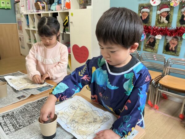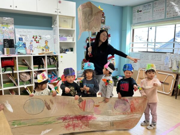 年少クラスでは、みんなで海賊船を作って、