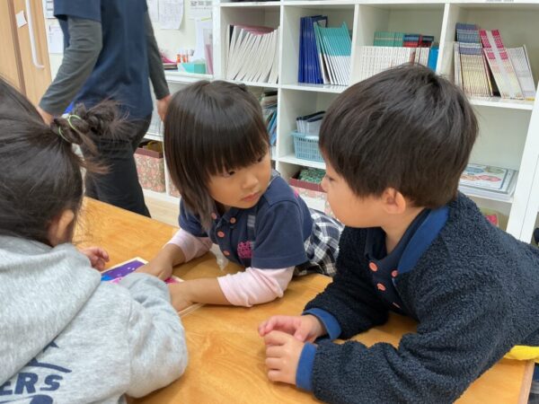 などと話し合いをして、ピースの置くところを教えてあげる姿も見られます。