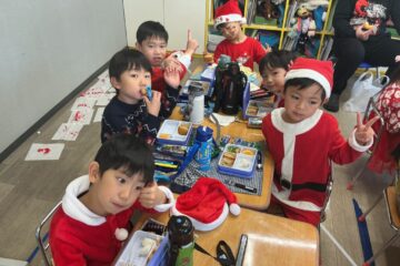 先週はクリスマスコンサート🎶でした!!🎄🎁 毎日みんなでコツコツ練習🎹してきたので、本番はニコニコ😊で一生懸命歌って踊って楽器演奏をしてくれました🎵 クリスマスパーティーではサンタさん🎅に会う事ができて沢山質問してくれていましたよ❕ クリスマスプレゼント🎁をお父さんやお母さんにも渡すことができて、大満足の一日でした🌟 Categories: 千種駅前校 Tags: ChikusaChristmas concertKinder Course