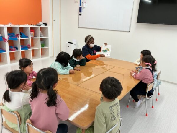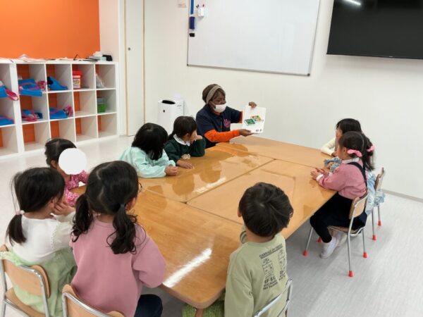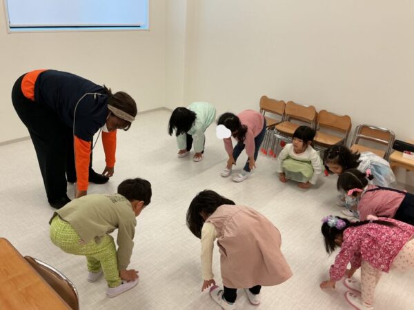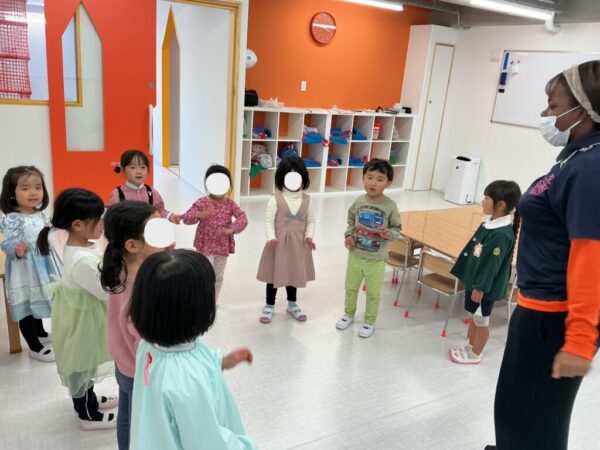 の声かけからスタート。お子様たちは自然と集まり、みんなで円になってHello Songを元気いっぱいに歌いました♪