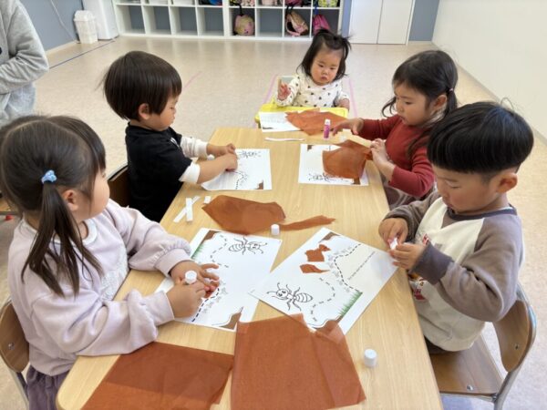様々な虫になりきって飛び跳ねたり、トンネルをくぐったり、クモの巣の上を歩いたり、たくさん身体を動かして楽しむことができました😁
