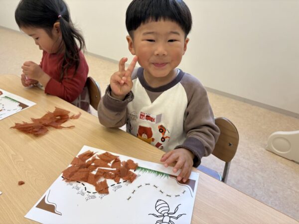 次に、ants(アリ)のようにお友達と協力をし合ってタワーを作りました!✨