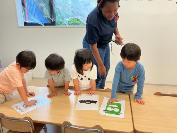ハロウィンの季節にぴったりのレッスンで、英語も工作も元気いっぱい楽しむことができました!