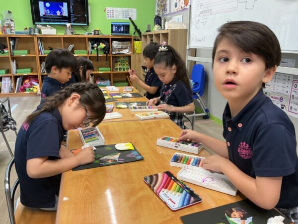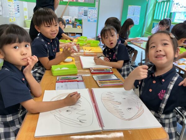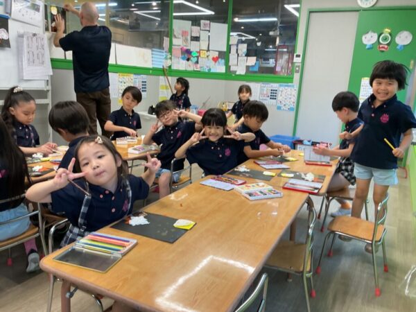 他にはDiscovery Timeでそれぞれが選んで、色鉛筆やクレヨンで絵を描いたり、粘土を使っていろんなものを