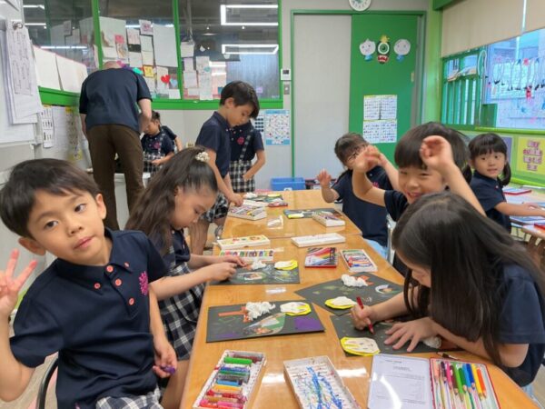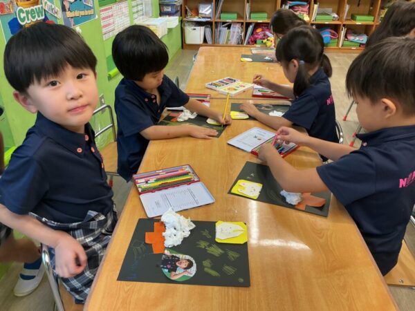 それ以外にも折り紙やハサミを使って月ウサギを作ったり、🎑お月見をしている自分を貼ってデコレーションしていったり工夫してクラフトを完成していきましたよ☆![]()