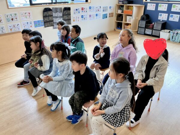 Circle timeでは、cocoon,caterpillar,butterfly,crawlの4つの単語をイラストを見ながら発音していきました!