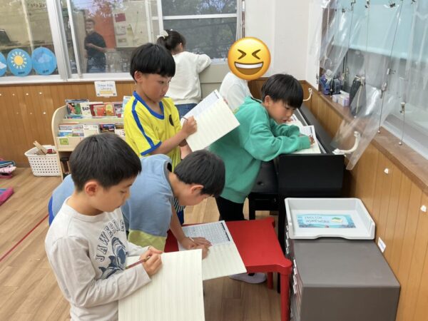 皆さん、真剣な眼差しで、見つけたカードの単語をノートにとっていますね!