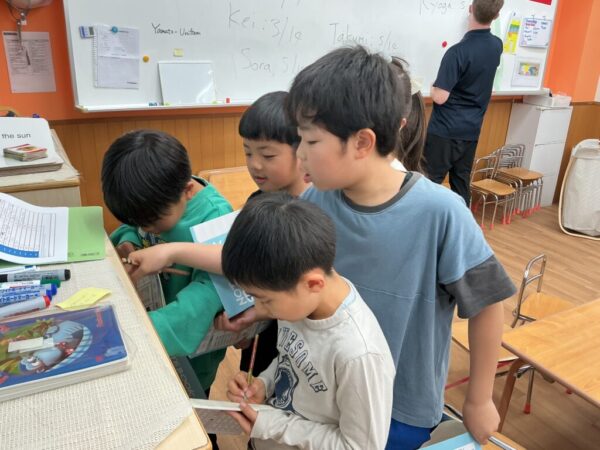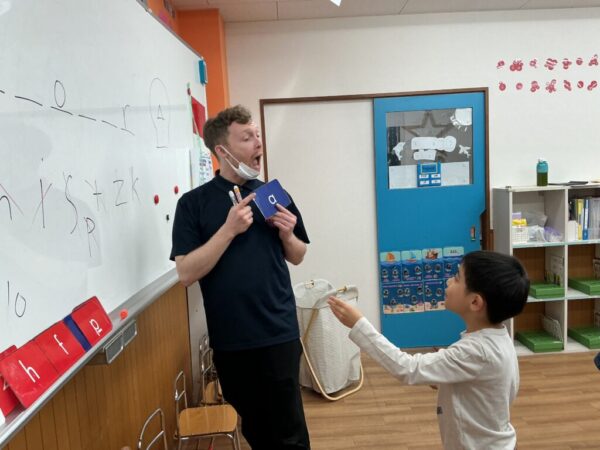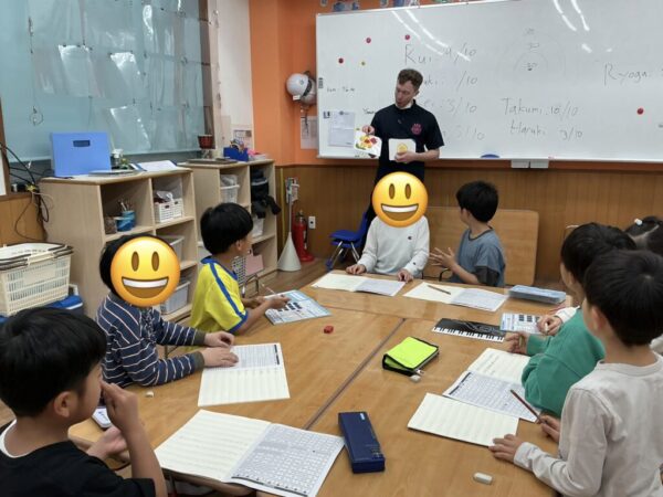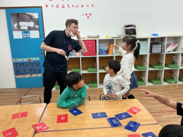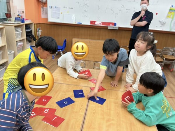 だんだんアルファベットが埋まってくると“Is it ~?”と講師に聞いていきます。