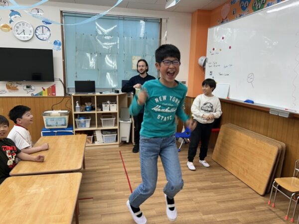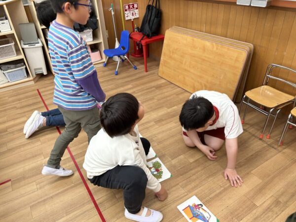 文法が身についてきたところで、講師に出されたお題を絵で描いて、チーム対抗の伝言ゲームを行いましたよ。