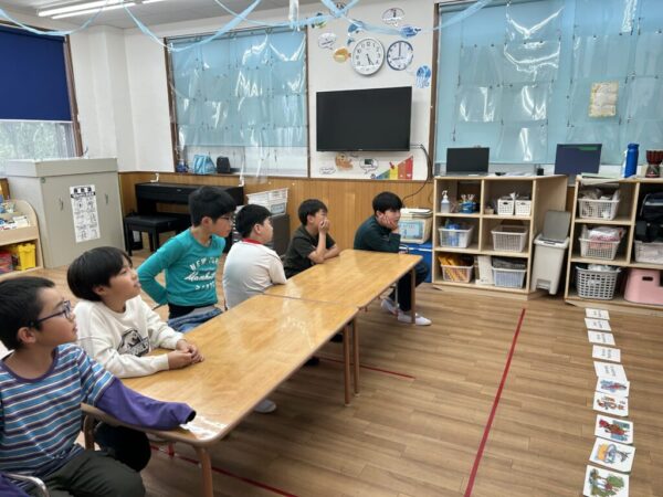 黒板に書かれている順番にフラッシュカードを並べていきます。