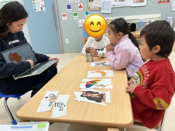 講師と一緒にPhonicsを使って発音していくと、“Africa!!”としっかり言えましたよ!