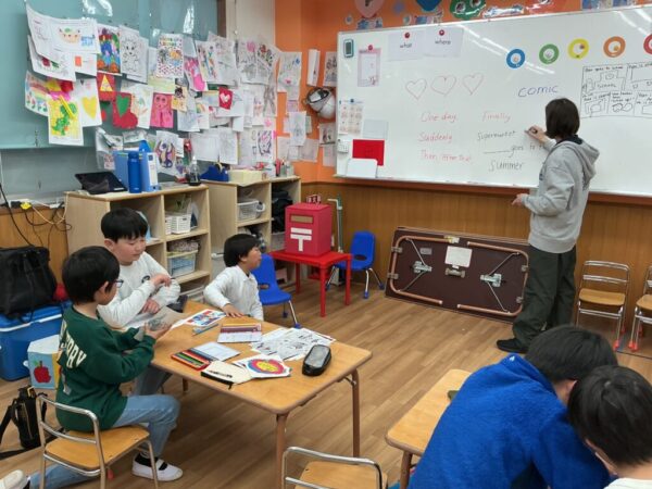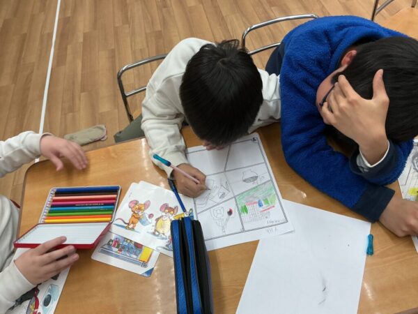 今回はみなさんのが一年間勉強してきた単語を使って総復習を兼ねてオリジナルのcomic作成にチャレンジしましたよ!!