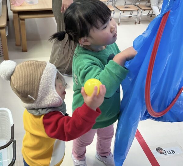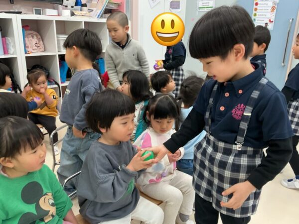 お手本のあとは、Ocean kidsのお兄さんお姉さんからボールをもらいます。