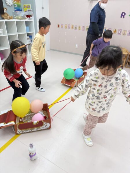 Santa’s sled races ではみなさん重りの入った、とても重いソリを全力で引いて、