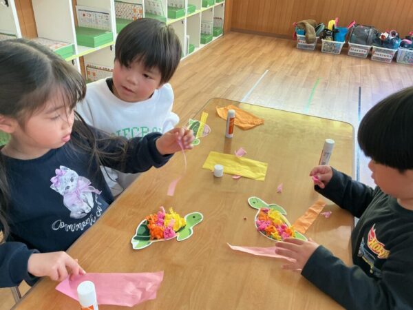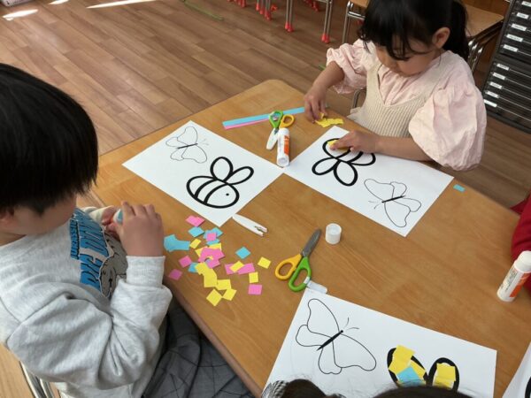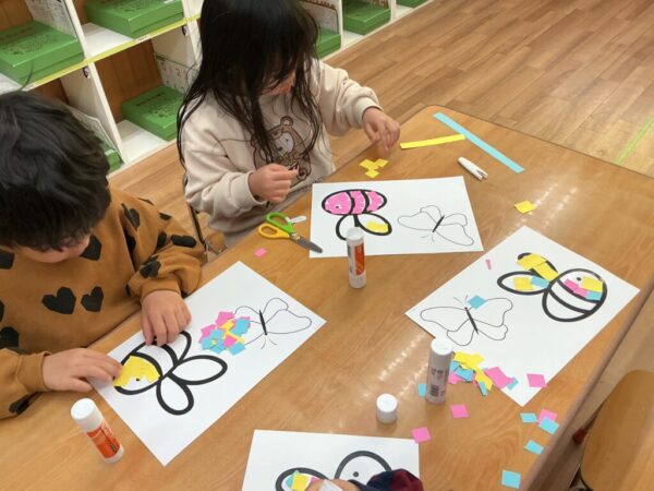 好きな色の紙をちぎったり、貼ったりして楽しそうですね♪