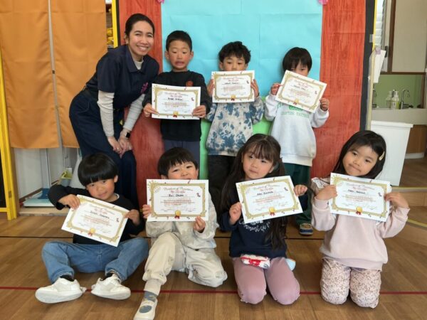 今年度のクラス最終日には、講師から1人ずつ“Certificate”(修了証)をもらいましたよ。