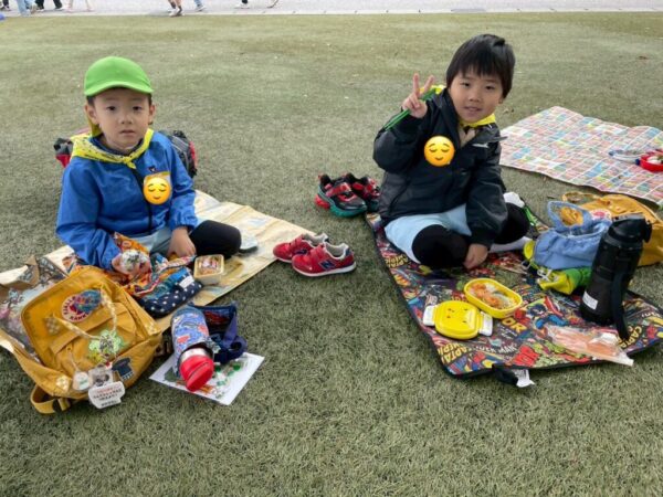 お外でレジャーシートを広げてピクニックを楽しみました♪