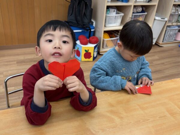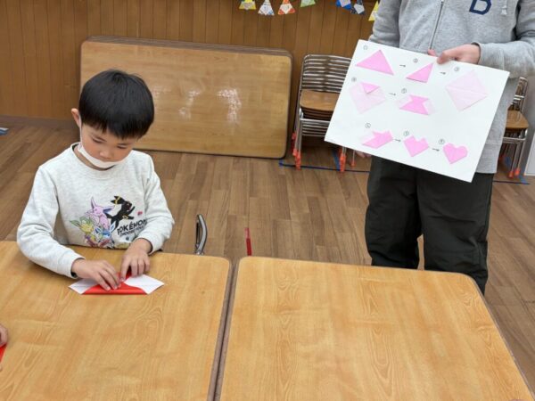 今回はバレンタインにちなみ、ハートを折り紙で作りました!