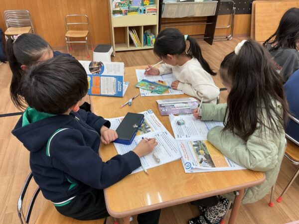 みんなで街の様子の変化を話し合いながら、昔の街の特徴、今の街の特徴をテキストブックに書くことでより街の変化を言葉で表現する練習をすることができました!