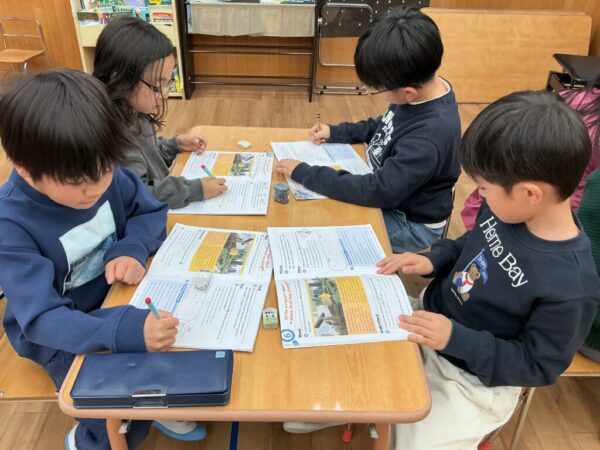 みんなで街の様子の変化を話し合いながら、昔の街の特徴、今の街の特徴をテキストブックに書くことでより街の変化を言葉で表現する練習をすることができました!