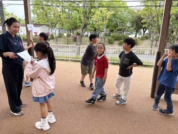 お子さま達はお外に出て体を動かしながら、「ar」「or」の音、英単語についても確認することができました☆