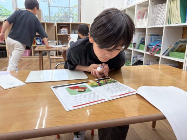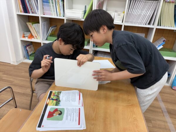 その後はJessa講師が出す問題について考え、答えを物語の中から見つけ、チーム対抗で答えをホワイトボードに書いていきます。