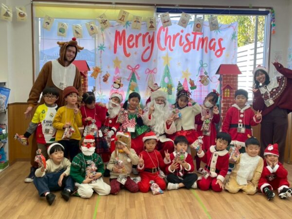 最後にみんなでサンタさんに会って、プレゼントをもらい、「Thank you!」とお礼をしてクリスマスパーティー終えました♪