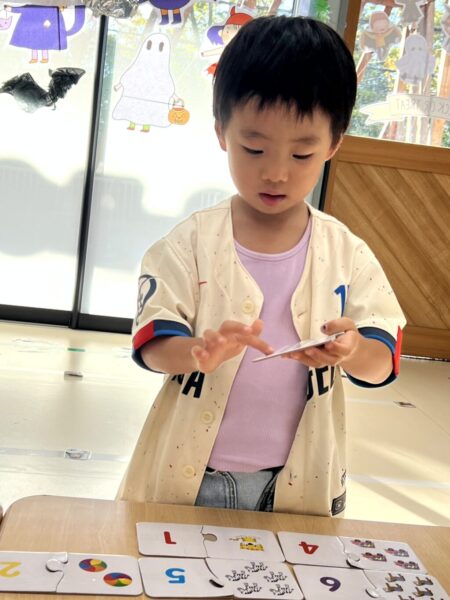 「one, two, three…」と自分で数えながらイラストをマッチしました!