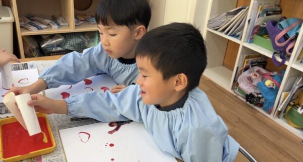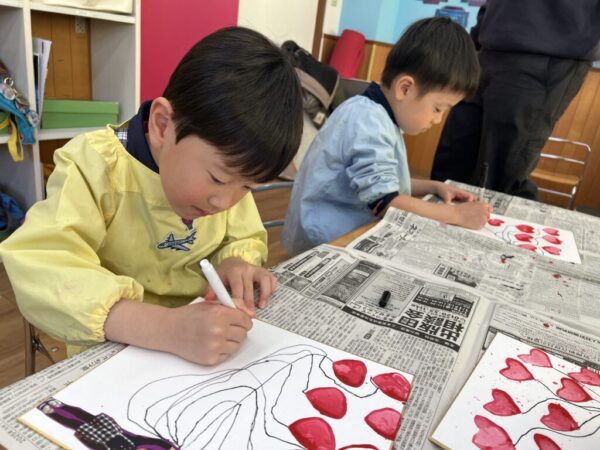 今日は先日Artクラスで行ったバレンタインデーの制作の様子をお伝えします♪