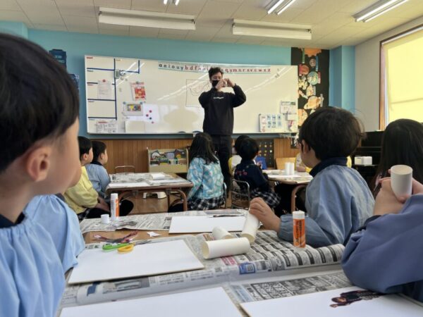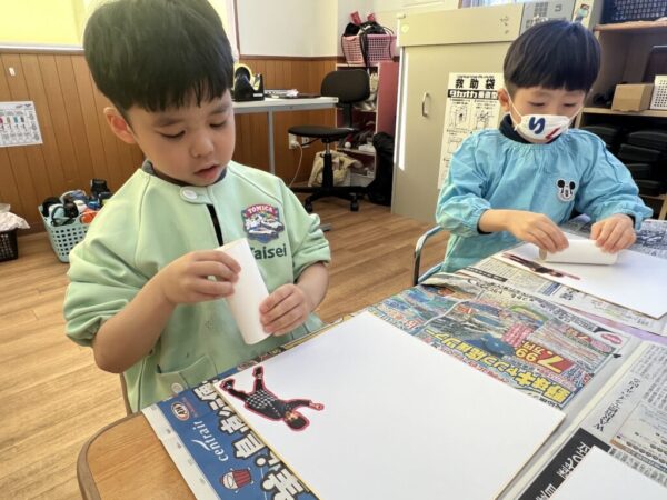 のりを使って端までしっかり押さえ、「It’s good!(うまくできた!)」と満足そうなGalaxy Kidsでした。