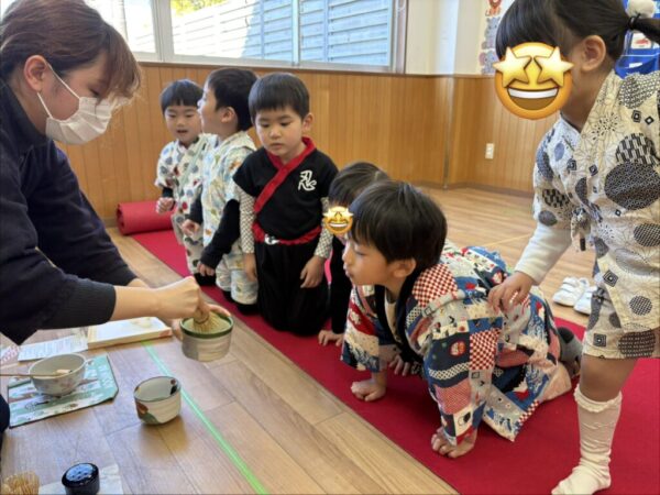 お抹茶に興味津々な様子のお子さま達!
