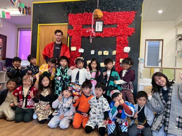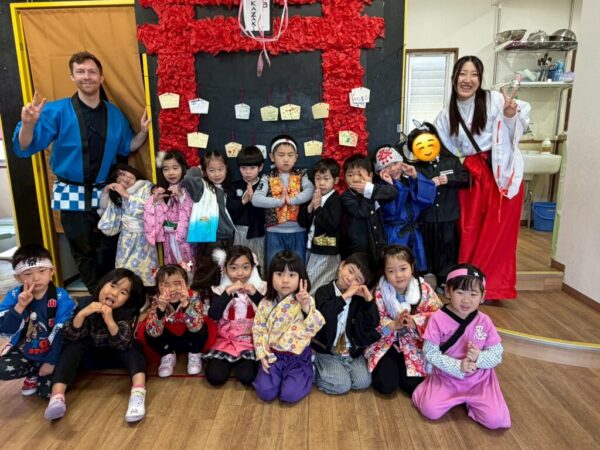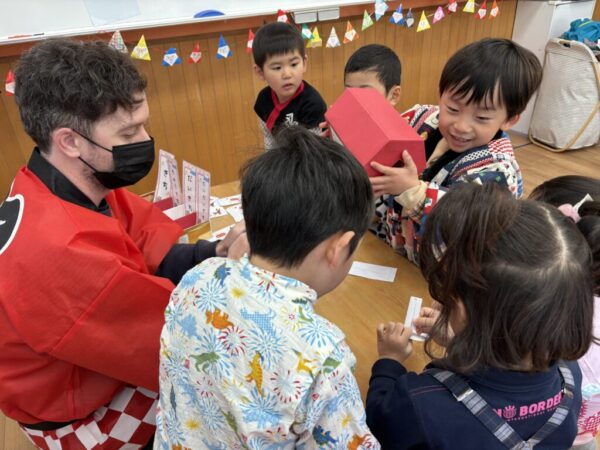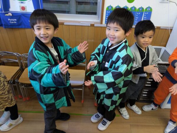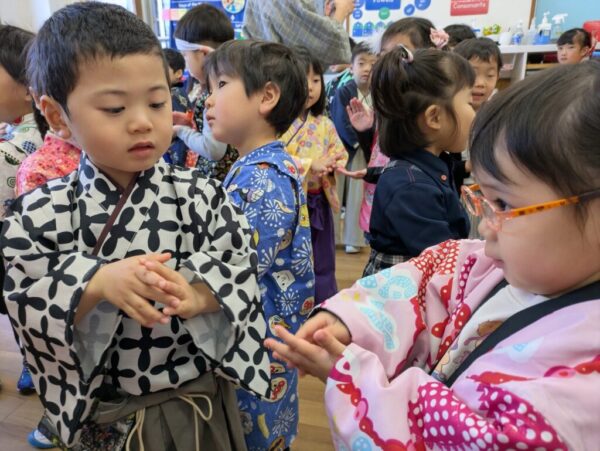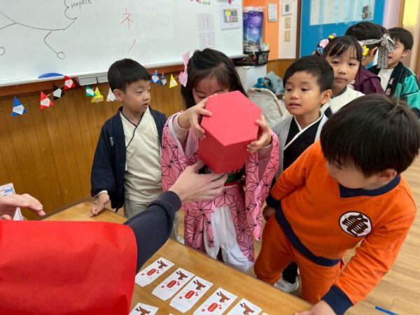 始めにみんなで「日本語スイッチon!」と英語から日本語に切り替えてから、全員で「あけましておめでとうございます。」と新年の挨拶をしました。