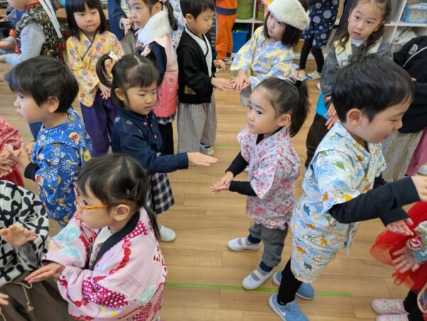 「お正月の餅つきはー♪ぺったんこ、ぺったんこ、ぺったんぺったんぺったんこ♪」のお歌に合わせて餅つきの真似をしましたよ!