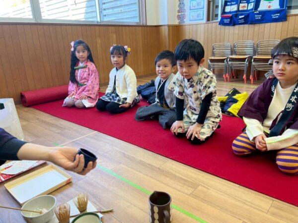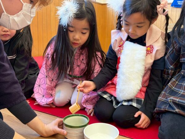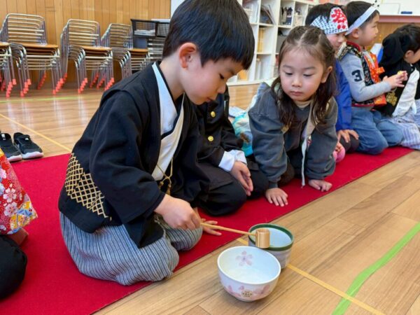 お子さま達は講師と一緒にお抹茶を立てることができました!