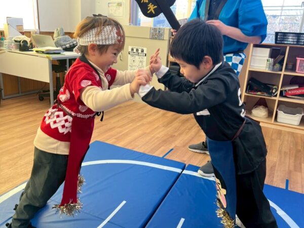 どのお子さまも力いっぱい押し合いをして、相撲ゲームを全力で楽しんでいました♪