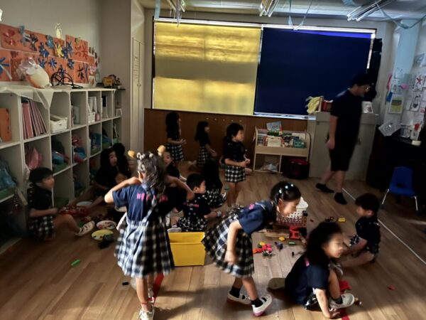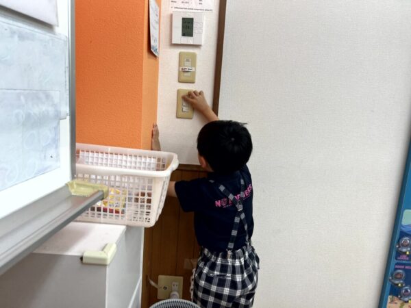 電気を消すとまっくらな教室に大盛り上がりのお子様達。