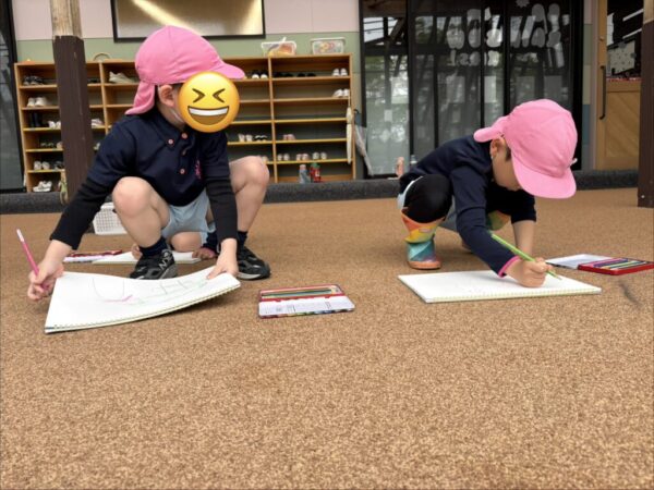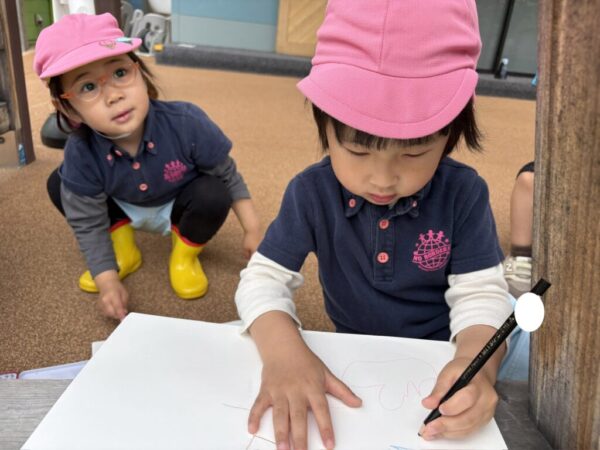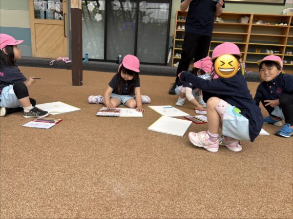どのお子さまもとても真剣な姿で取り組むことができ、描き終えると近くのお友達や講師に、「Look!」ととても嬉しそうな表情で見せてくれました。