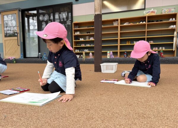 たくさんの色を使ってみつけたお花や葉をスケッチブックに自由に描いているお子さまもいました。
