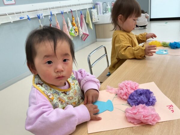 今月は春らしい、お花のクラフトも行いましたよ!