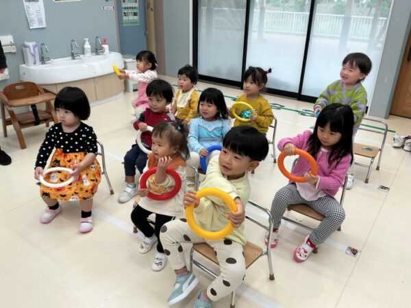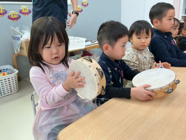 Oceankidsクラス(年中クラス)のお兄さんお姉さんと一緒に楽器を演奏している様子です。