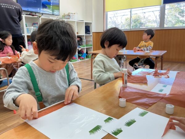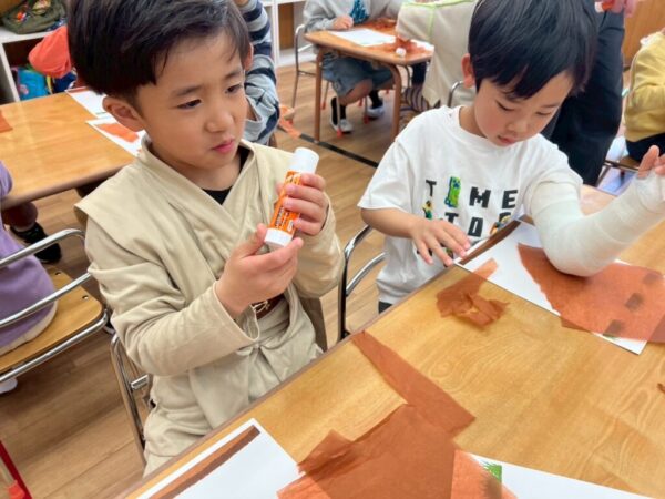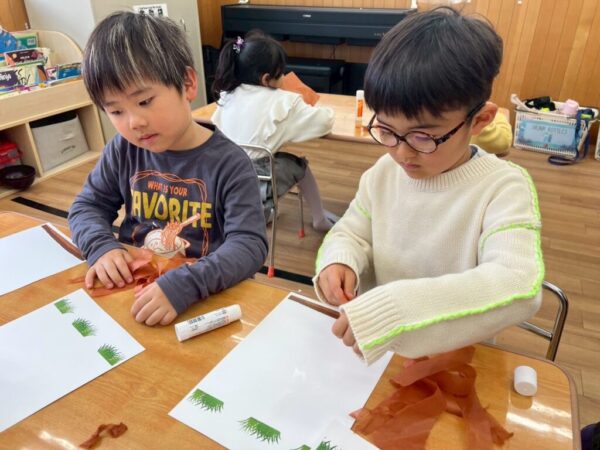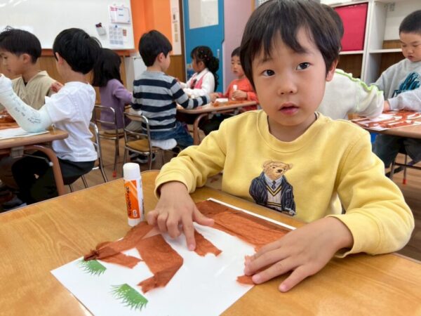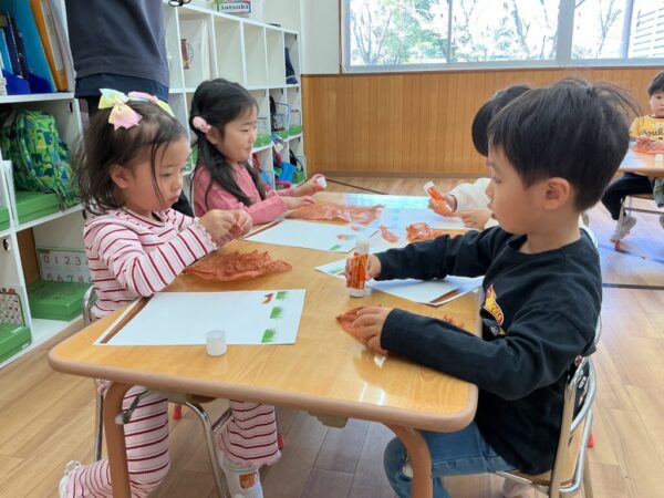 お子さま達はお花紙を上手に使ってアリの巣を作り、