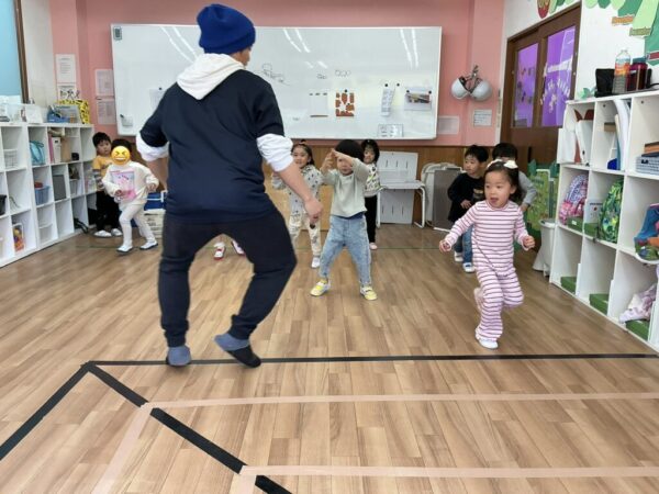 「Spider‼︎」といって蜘蛛が床にいることを想像しながら教室の中をぐるぐる歩いていたお子さま達です!