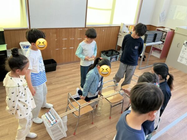 昆虫役のお子さまは蜘蛛の巣の先にある宝物を取りに行くため、上手に蜘蛛役のお子さまがいないスペースを上手に通って宝物を持ち帰る姿が見られました⭐︎