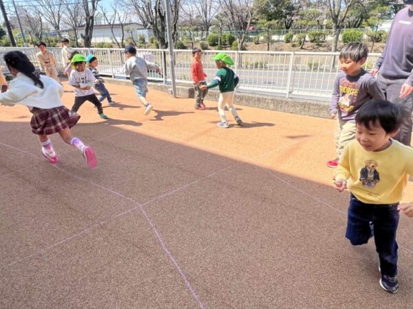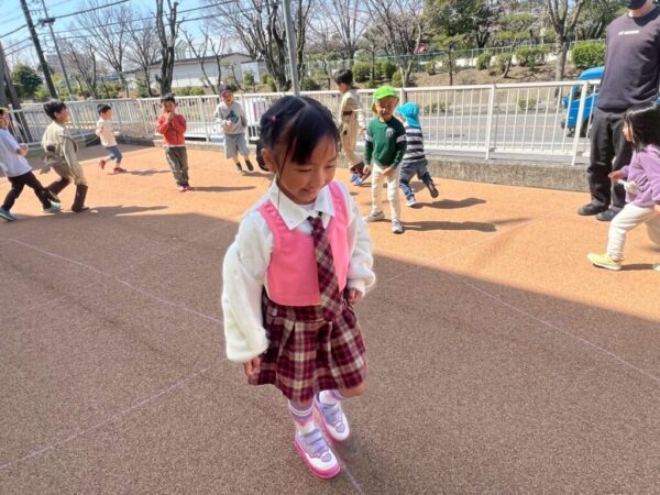 蜘蛛役のお子さまもジャンプして線の上を渡ったりと工夫をしながら昆虫役のお子さまをタッチする姿も見られましたよ!