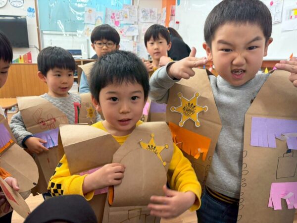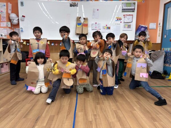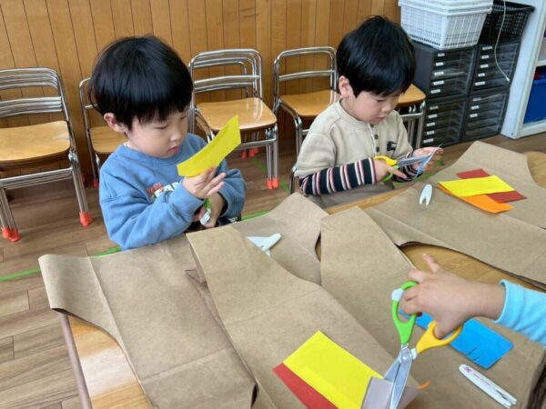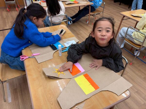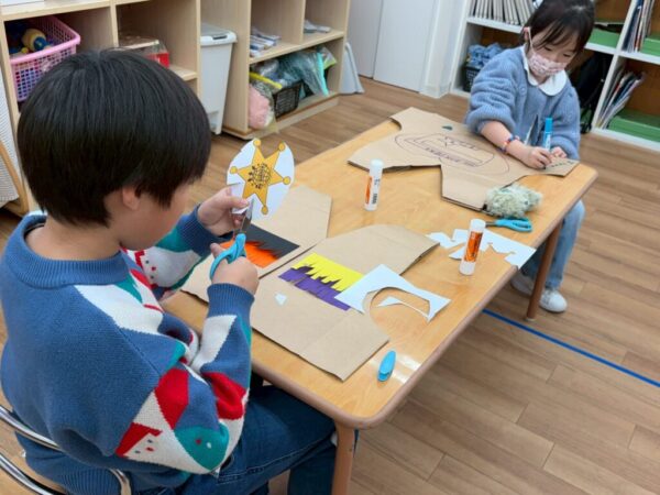 その後は、折り紙やブローチを使ってベストをよりカウボーイらしく、お子さまのお好きなデザインでベストを作ることができました!