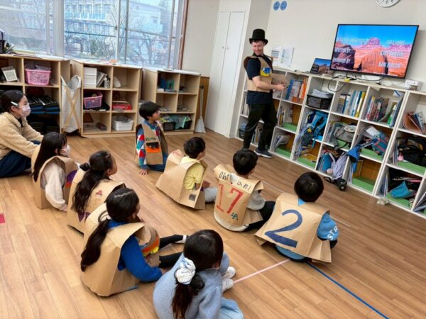 お子さま達は本日にテーマである「カウボーイ」のダンスをしてカウボーイになりきる準備をしましたよ!