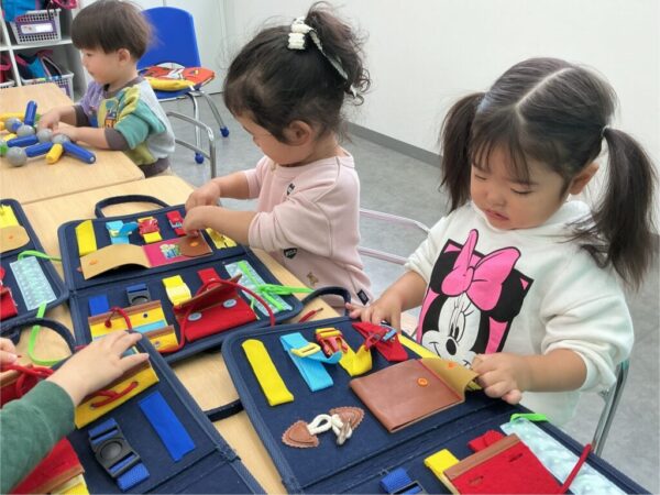 おもちゃを使って指先を使う練習を行っています!
