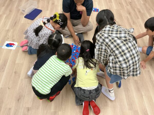 フォニックスを習得してきた子どもたちは、Kenzel講師が発音するのを聞いただけでブロックを使い単語を作ることができます。