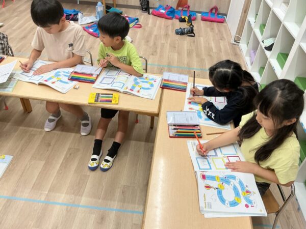 読み書きの練習も行います。単語の穴埋めを行ったり、書かれている単語を読みその絵を描くというものを行ったりしました。
